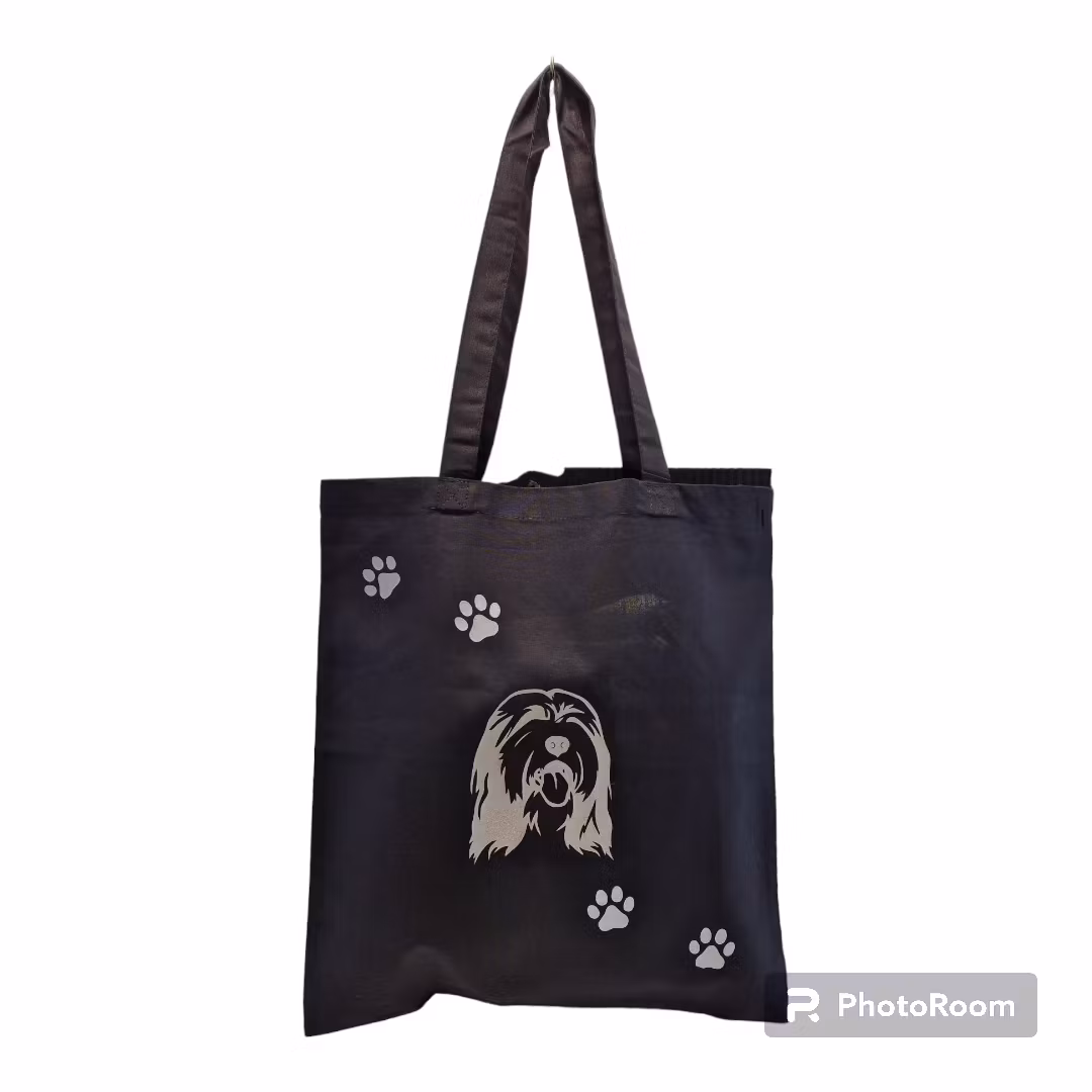 Här har kan du beställa tygkasse med bild silhouette hundras, önskar du att det står rasen skrivet under silhouetten och hundens namn, välj typsnitt (se sista bilden) och skriv det i meddelandefältet i varukorgen.